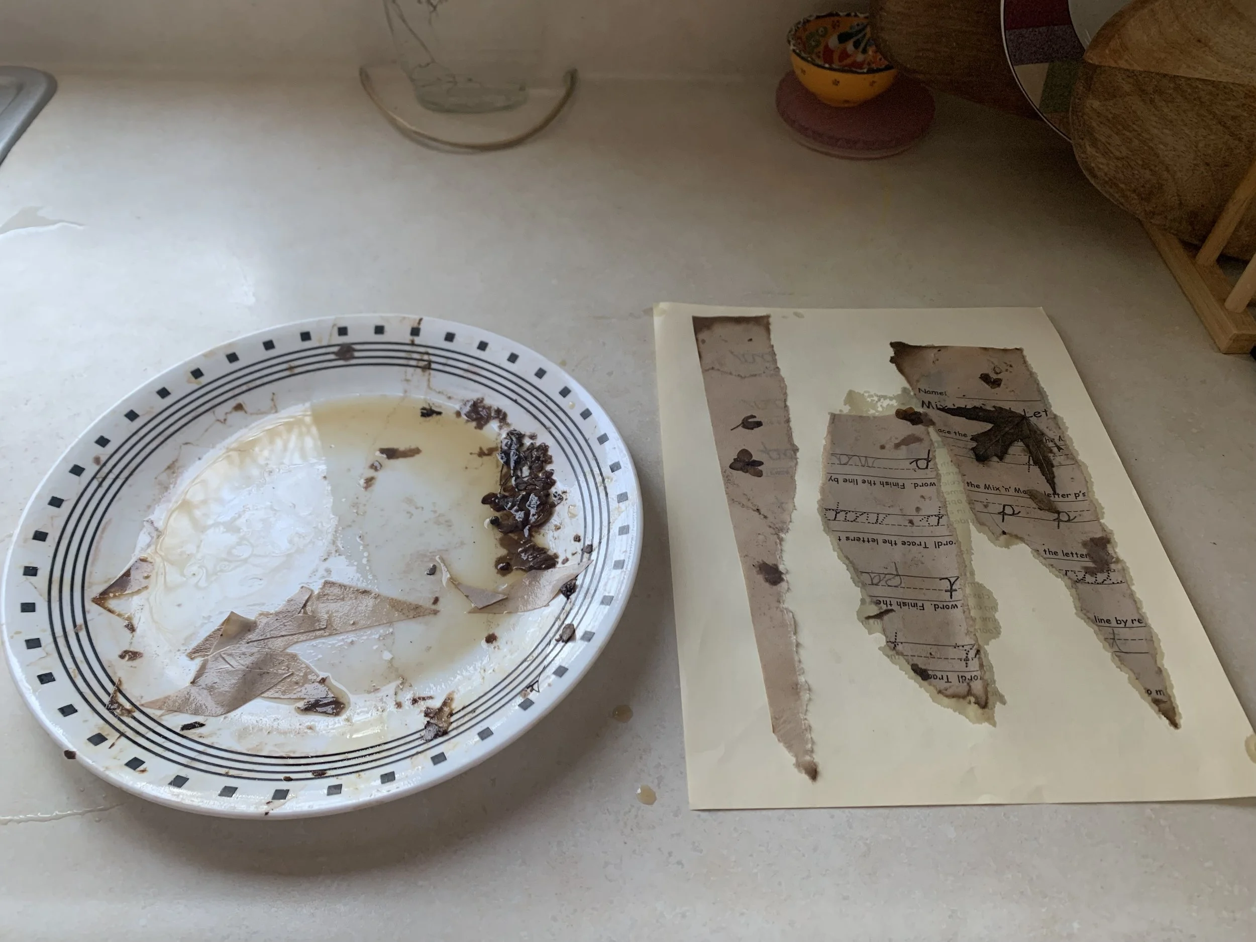 Within the first 2 weeks there were sketchings, digital snowscapes (dedicated to California fires), paper collages, and finishing my experiments with natural paper dyeing. The natural dyeing was the most tedious of all but also an exciting experience!