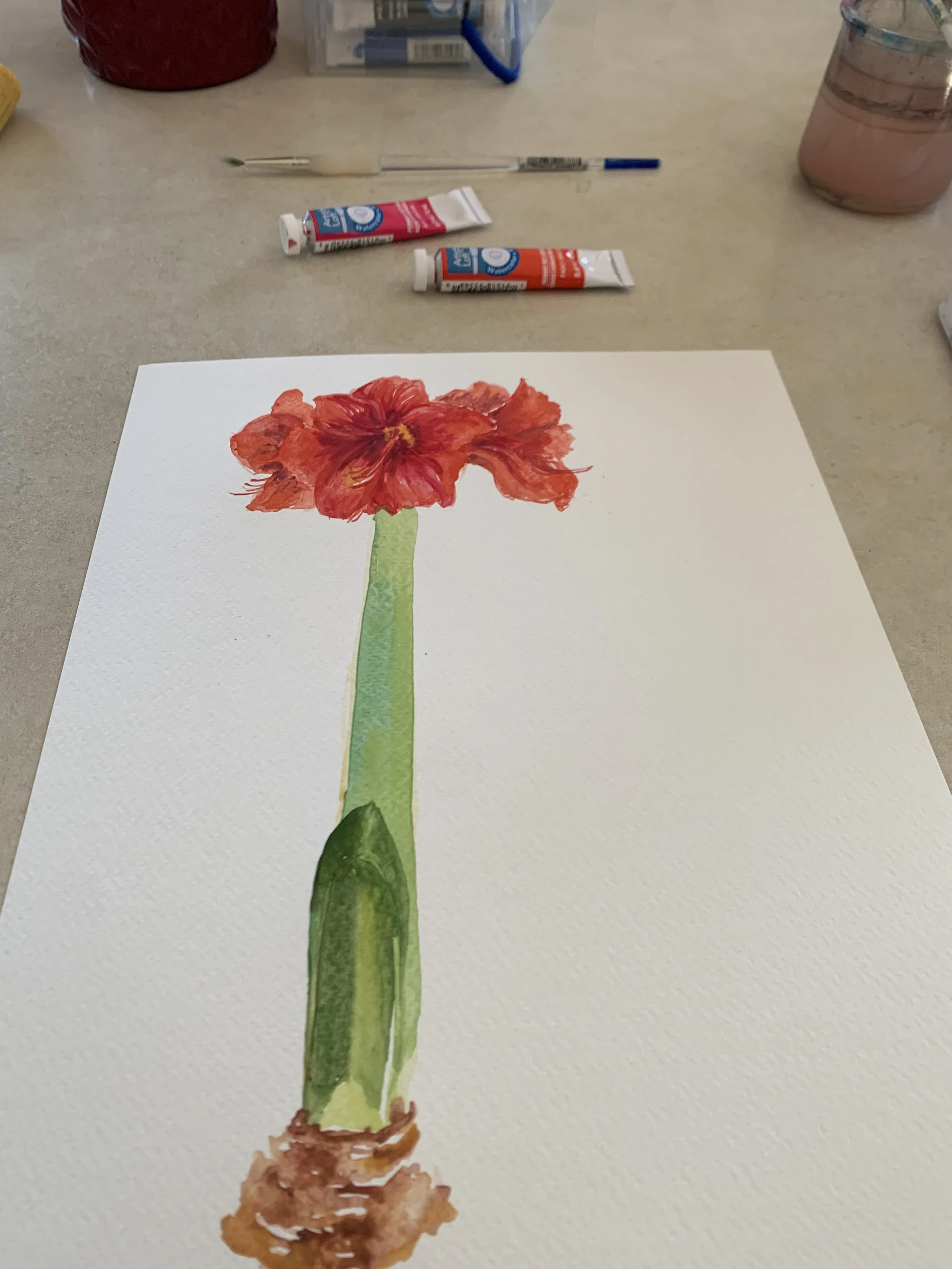 By then the Amerillys started blooming. The RED was striking, and for the next couple weeks, i saw myself capturing it, trying hands on watercolors, gauche, digital scribbles and photography. While rendering there felt a connection- to the Flower, the plant but also with the Color- a vermillion + crimson with tones of maroon at the center.
