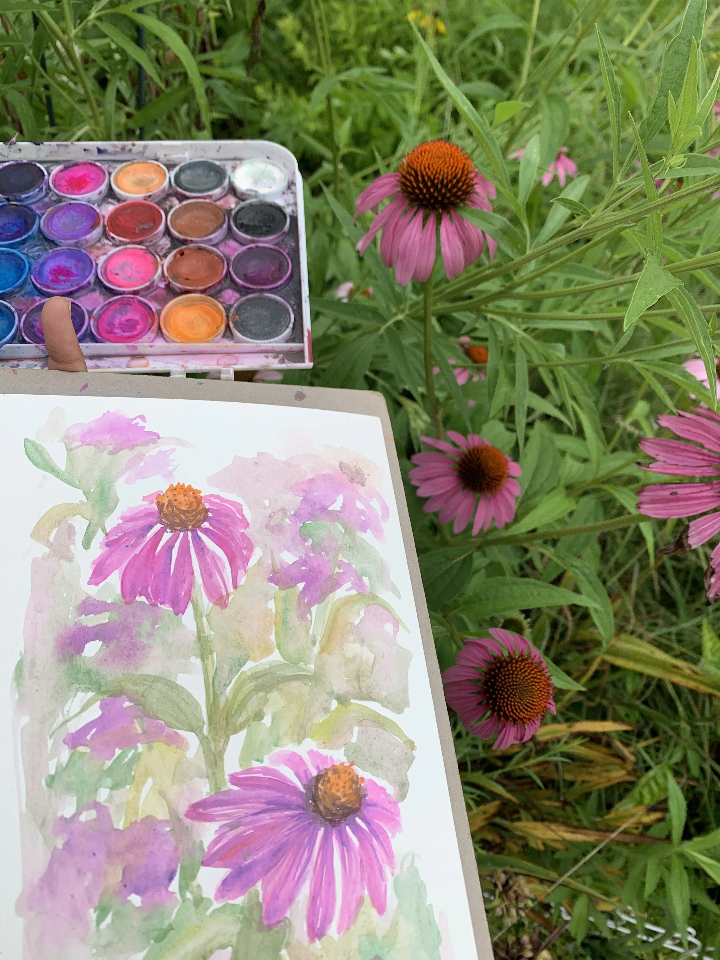 After our family guest left, my sketching and drills resumed. The prairie in bloom was my fertile ground for study.