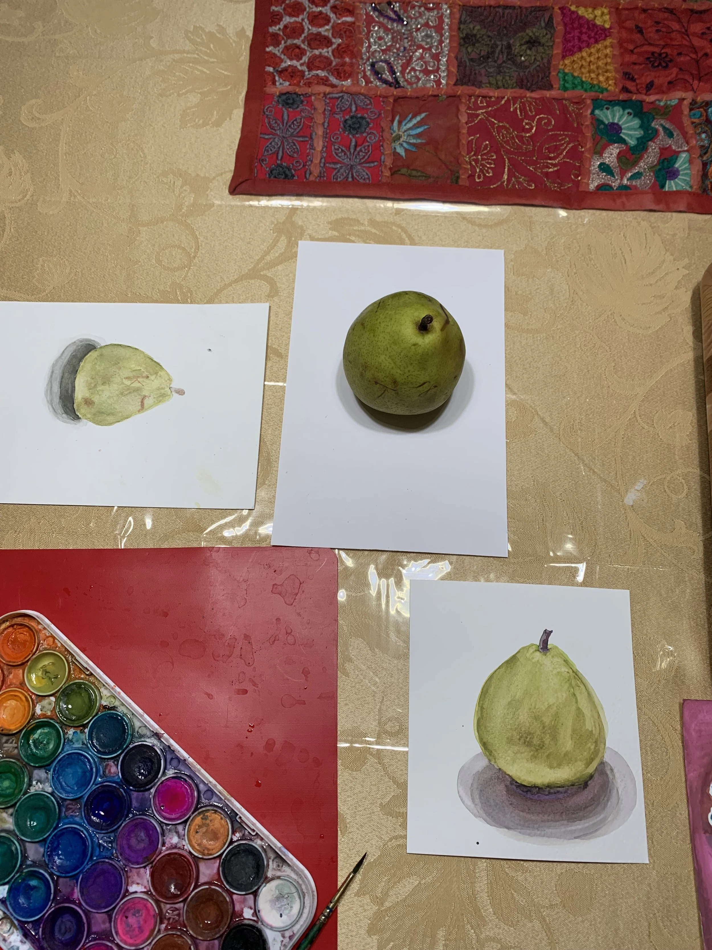 During workshops, was the same delightful experience watching the students create, this time with watercolors. Preparing the space, laying out the materials, setting up A/V links was part of that delight too!