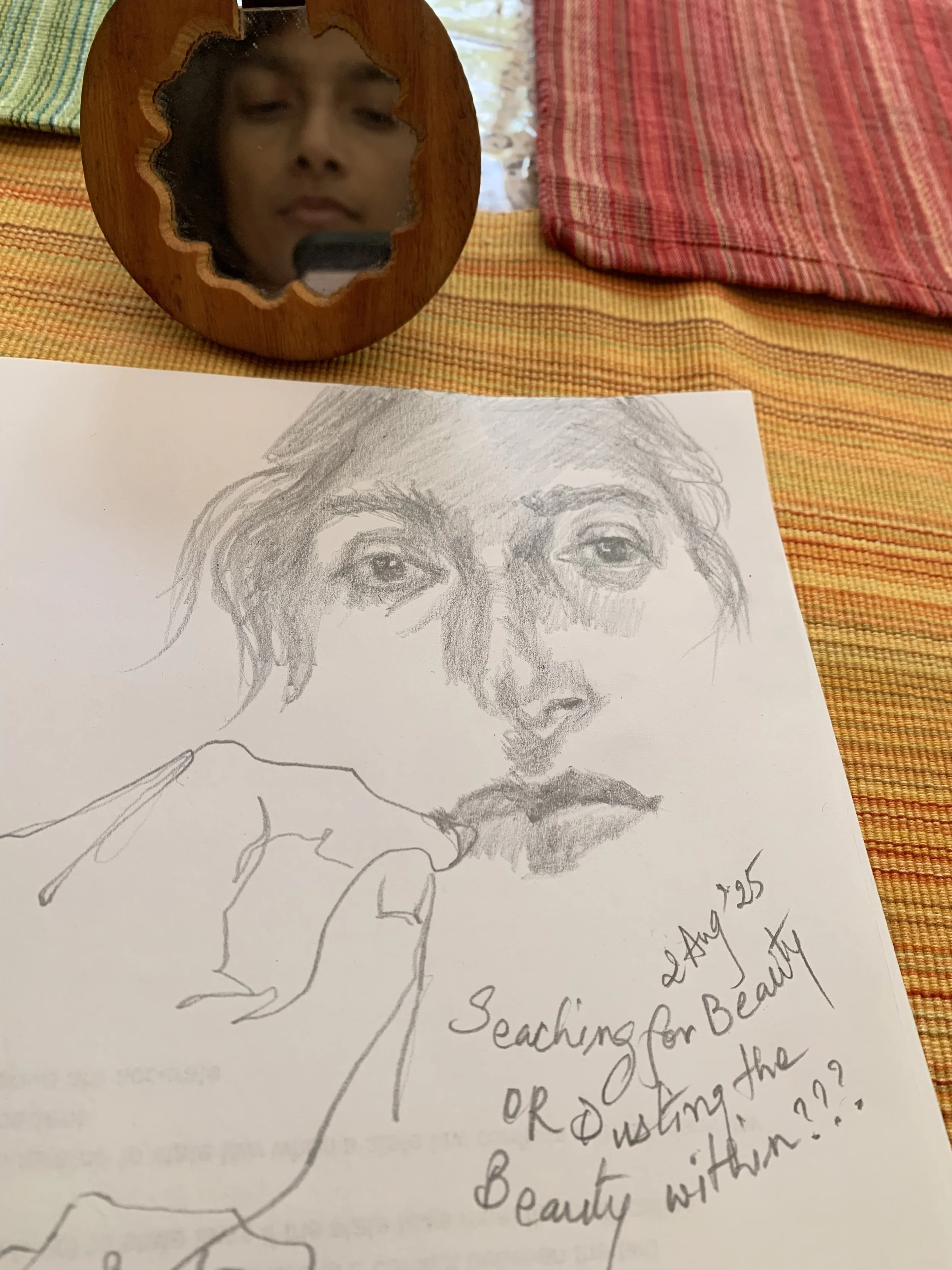 I was going through some self reflections and after a long time made a self portrait. It’s a way of looking deep within myself. A short pause to self reflect goes a long way?!